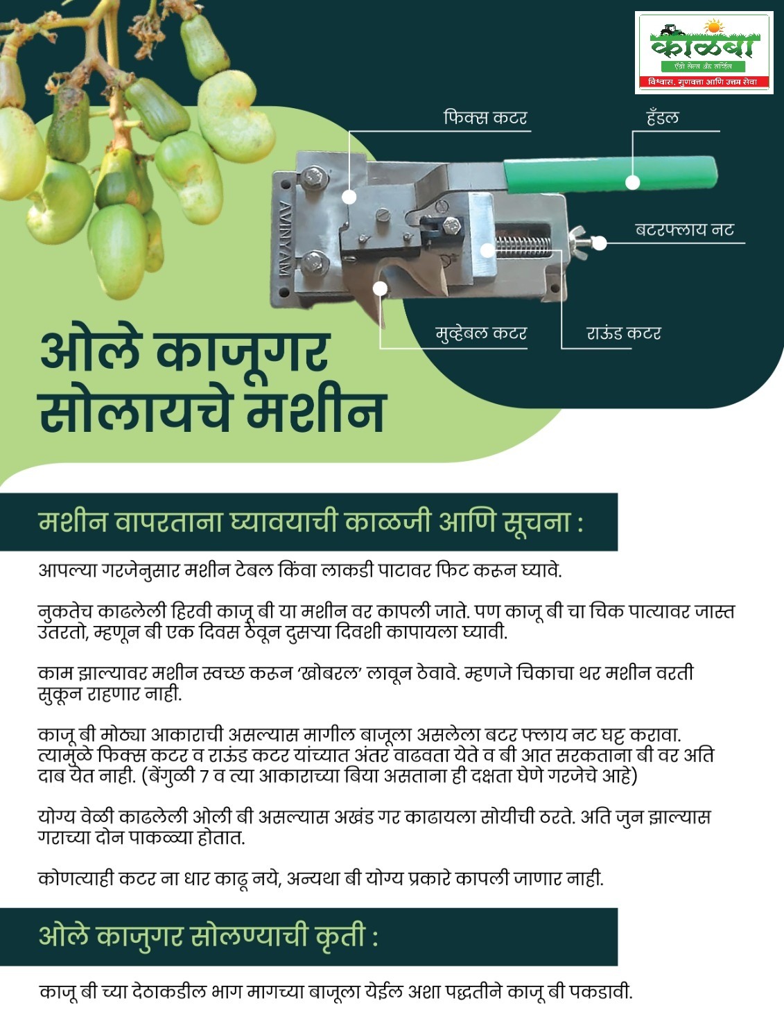 • Suitable for cashew processing units, farmers, and traders